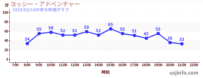 • ジョーズ(R)$B$N(B2025年03月14日の待ち時間
