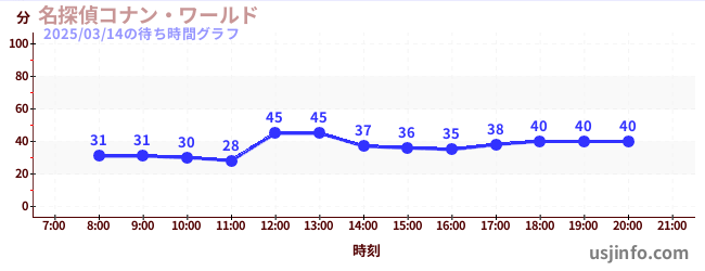 • 名探偵コナン・ワールド$B$N(B2025年03月14日の待ち時間