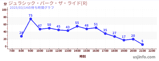 • ジュラシック・パーク・ザ・ライド(R)$B$N(B2025年03月14日の待ち時間