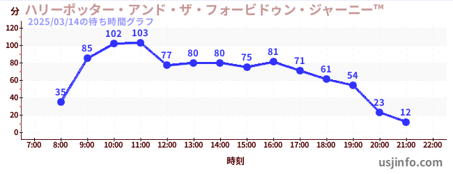 • ハリーポッター・アンド・ザ・フォービドゥン・ジャーニー™$B$N(B2025年03月14日の待ち時間