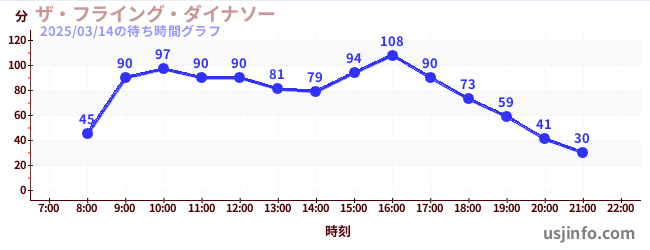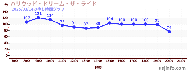 • ハリウッド・ドリーム・ザ・ライド$B$N(B2025年03月14日の待ち時間