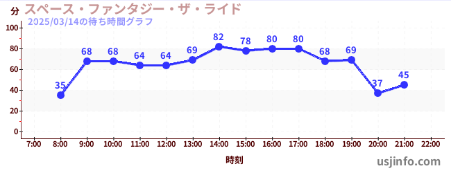 • スペース・ファンタジー・ザ・ライド$B$N(B2025年03月14日の待ち時間