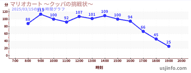 • マリオカート ~クッパの挑戦状~$B$N(B2025年03月15日の待ち時間