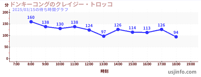 • ドンキーコングのクレイジー・トロッコ$B$N(B2025年03月15日の待ち時間