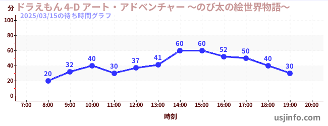 • ドラえもん 4-D アート・アドベンチャー ~のび太の絵世界物語~$B$N(B2025年03月15日の待ち時間