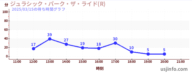 • ジュラシック・パーク・ザ・ライド(R)$B$N(B2025年03月15日の待ち時間