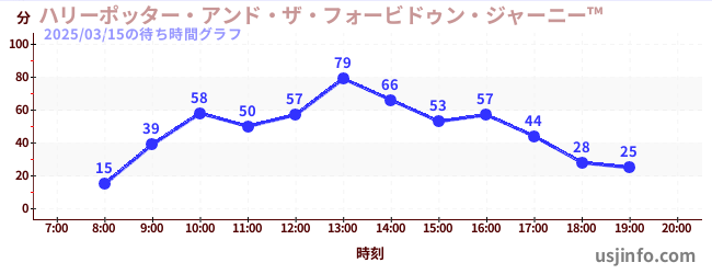 • ハリーポッター・アンド・ザ・フォービドゥン・ジャーニー™$B$N(B2025年03月15日の待ち時間