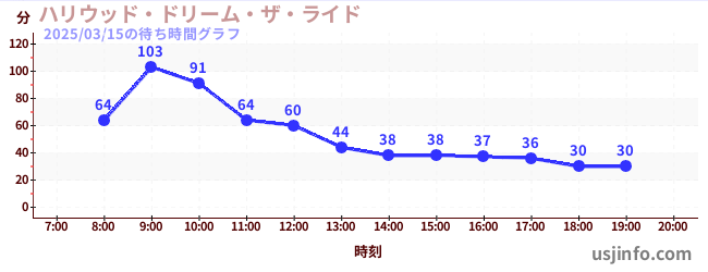 • ハリウッド・ドリーム・ザ・ライド$B$N(B2025年03月15日の待ち時間