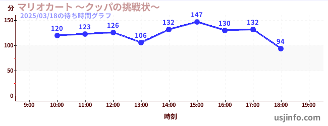 • マリオカート ~クッパの挑戦状~$B$N(B2025年03月18日の待ち時間