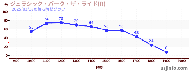 • ジュラシック・パーク・ザ・ライド(R)$B$N(B2025年03月18日の待ち時間