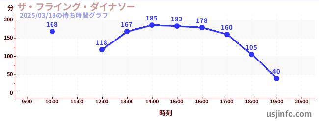 • ザ・フライング・ダイナソー$B$N(B2025年03月18日の待ち時間