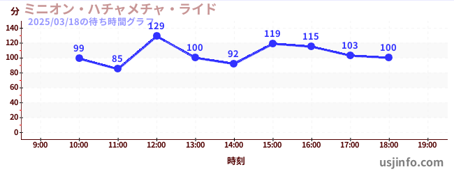 • ミニオン・ハチャメチャ・ライド$B$N(B2025年03月18日の待ち時間