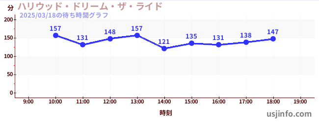 • ハリウッド・ドリーム・ザ・ライド$B$N(B2025年03月18日の待ち時間