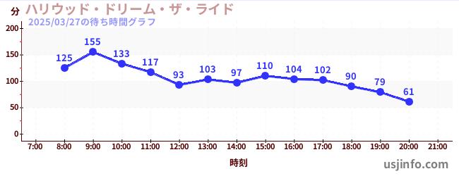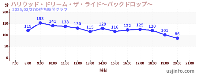 • ハリウッド・ドリーム・ザ・ライド〜バックドロップ〜$B$N(B2025年03月27日の待ち時間