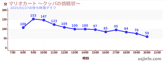 • マリオカート ~クッパの挑戦状~$B$N(B2025年03月27日の待ち時間