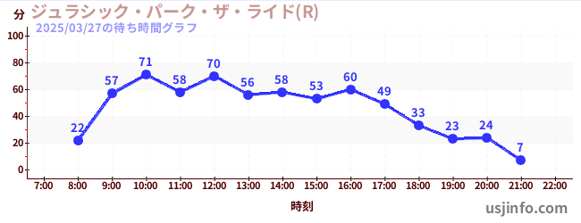 • ジュラシック・パーク・ザ・ライド(R)$B$N(B2025年03月27日の待ち時間