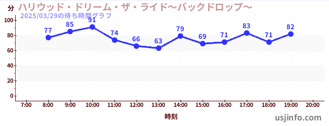 • ハリウッド・ドリーム・ザ・ライド〜バックドロップ〜$B$N(B2025年03月29日の待ち時間