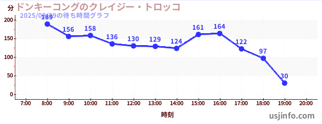 • ドンキーコングのクレイジー・トロッコ$B$N(B2025年03月29日の待ち時間