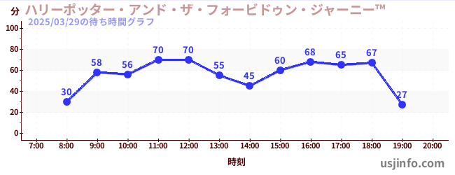 • ハリーポッター・アンド・ザ・フォービドゥン・ジャーニー™$B$N(B2025年03月29日の待ち時間