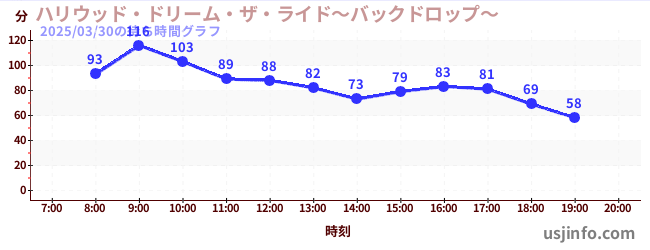 • ハリウッド・ドリーム・ザ・ライド〜バックドロップ〜$B$N(B2025年03月30日の待ち時間