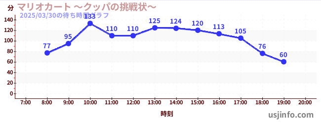 • マリオカート ~クッパの挑戦状~$B$N(B2025年03月30日の待ち時間