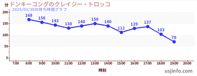 • ドンキーコングのクレイジー・トロッコ$B$N(B2025年03月30日の待ち時間