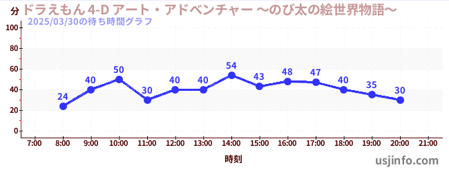 • ドラえもん 4-D アート・アドベンチャー ~のび太の絵世界物語~$B$N(B2025年03月30日の待ち時間