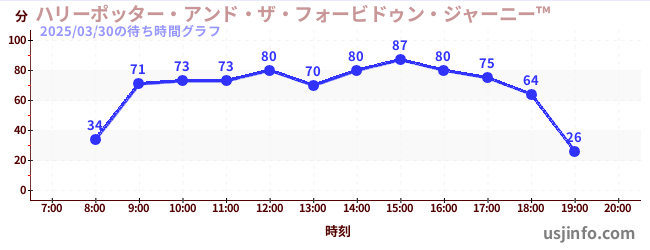 • ハリーポッター・アンド・ザ・フォービドゥン・ジャーニー™$B$N(B2025年03月30日の待ち時間