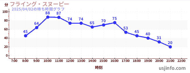 • フライング・スヌーピー$B$N(B2025年04月02日の待ち時間