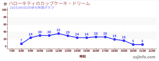 • ハローキティのカップケーキ・ドリーム$B$N(B2025年04月02日の待ち時間