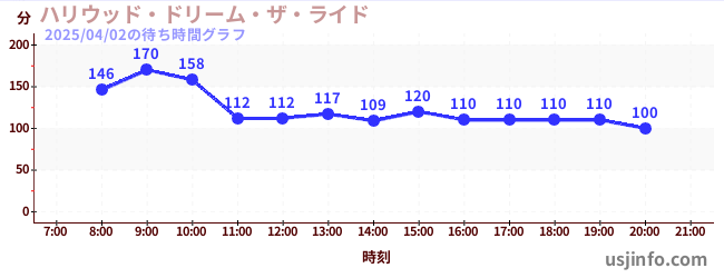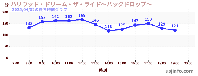 • ハリウッド・ドリーム・ザ・ライド$B$N(B2025年04月02日の待ち時間