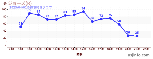 • ジョーズ(R)$B$N(B2025年04月02日の待ち時間