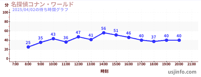 • 名探偵コナン・ワールド$B$N(B2025年04月02日の待ち時間