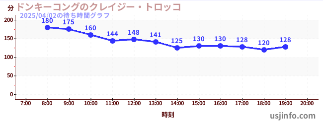 • ドンキーコングのクレイジー・トロッコ$B$N(B2025年04月02日の待ち時間