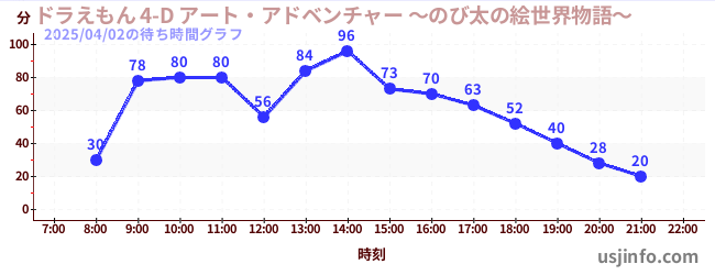 • ドラえもん 4-D アート・アドベンチャー ~のび太の絵世界物語~$B$N(B2025年04月02日の待ち時間