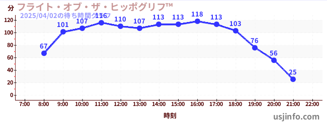 • フライト・オブ・ザ・ヒッポグリフ™$B$N(B2025年04月02日の待ち時間