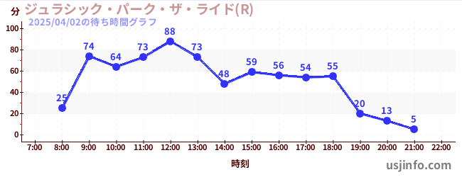 • ジュラシック・パーク・ザ・ライド(R)$B$N(B2025年04月02日の待ち時間