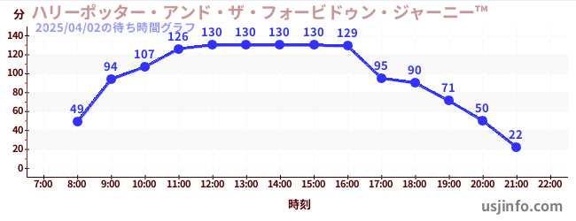• ハリーポッター・アンド・ザ・フォービドゥン・ジャーニー™$B$N(B2025年04月02日の待ち時間