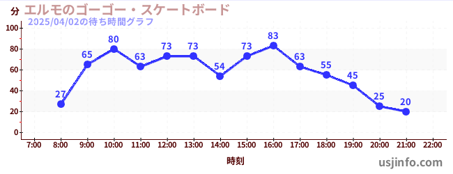 • エルモのゴーゴー・スケートボード$B$N(B2025年04月02日の待ち時間