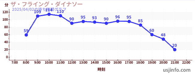 • ザ・フライング・ダイナソー$B$N(B2025年04月02日の待ち時間