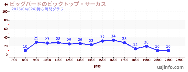 • ビッグバードのビックトップ・サーカス$B$N(B2025年04月02日の待ち時間