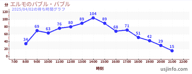 • エルモのバブル・バブル$B$N(B2025年04月02日の待ち時間