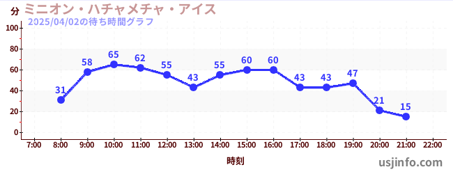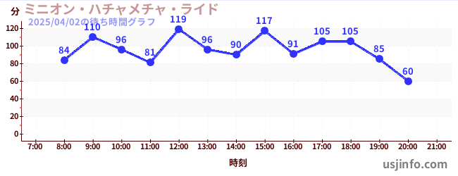 • ミニオン・ハチャメチャ・ライド$B$N(B2025年04月02日の待ち時間