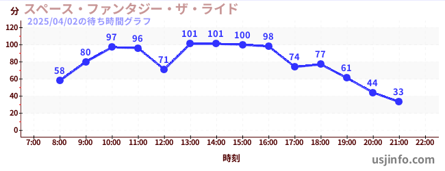 • スペース・ファンタジー・ザ・ライド$B$N(B2025年04月02日の待ち時間