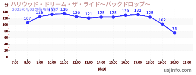 • ハリウッド・ドリーム・ザ・ライド〜バックドロップ〜$B$N(B2025年04月03日の待ち時間