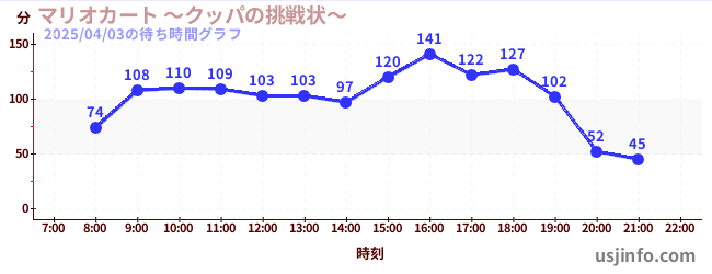 • マリオカート ~クッパの挑戦状~$B$N(B2025年04月03日の待ち時間