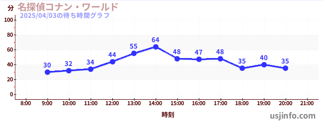 • 名探偵コナン・ワールド$B$N(B2025年04月03日の待ち時間