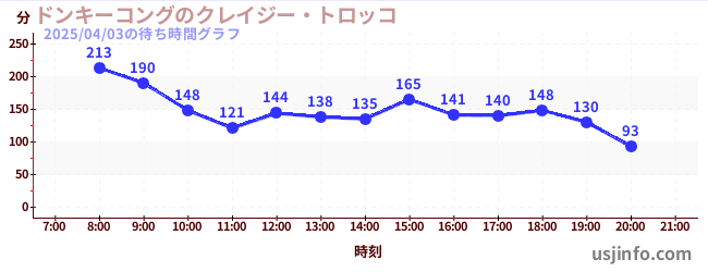 • ドンキーコングのクレイジー・トロッコ$B$N(B2025年04月03日の待ち時間