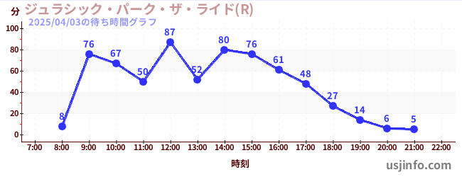 • ジュラシック・パーク・ザ・ライド(R)$B$N(B2025年04月03日の待ち時間