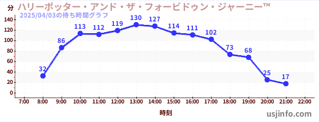• ハリーポッター・アンド・ザ・フォービドゥン・ジャーニー™$B$N(B2025年04月03日の待ち時間